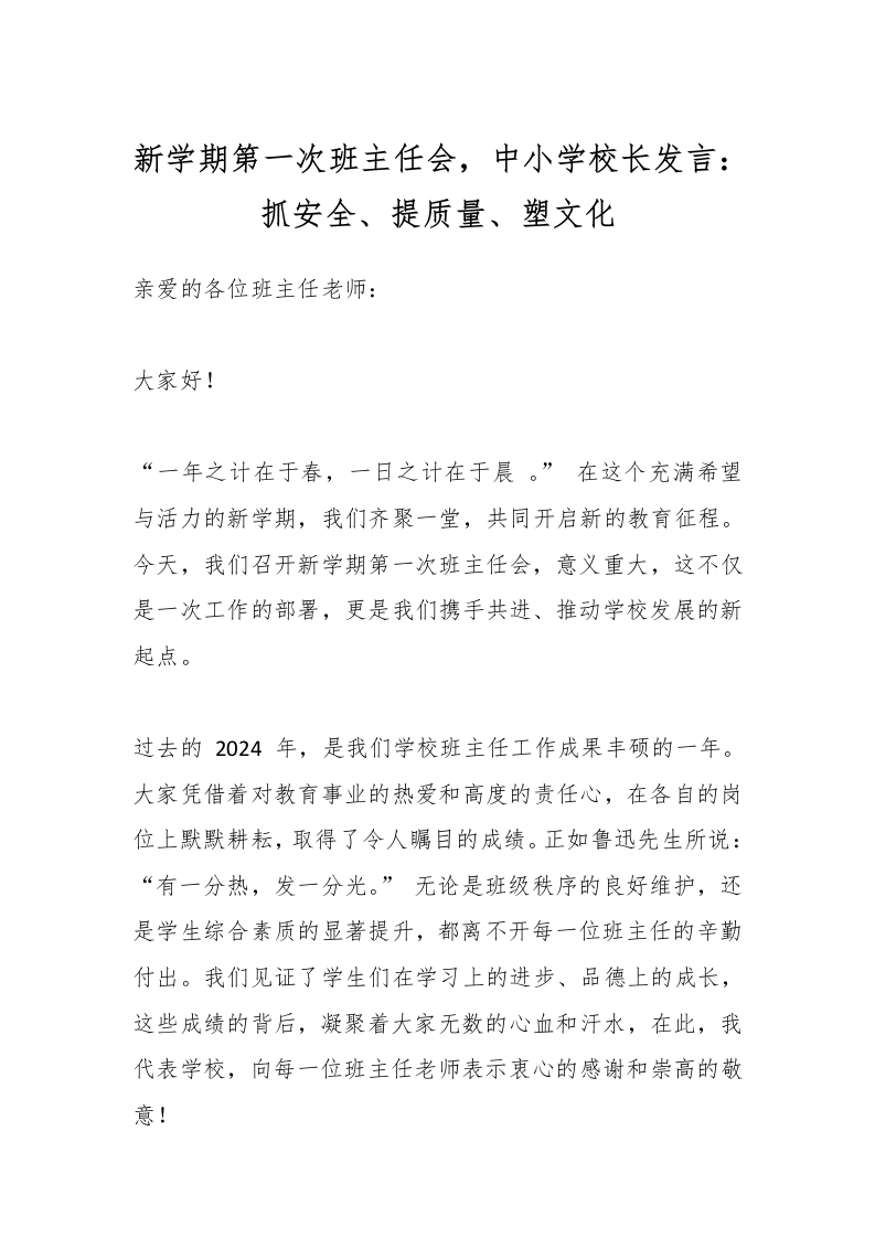 新学期第一次班主任会,中小学校长发言:抓安全、提质量、塑文化 02-21 发言稿 12 ——预览已结束,还剩3页未读——开通会员后可免费下载高清完整文档 资源下载此资源下载价格为15米,VIP免费,请先登录 资源下载下载价格15 米VIP免费请先登录 0 0