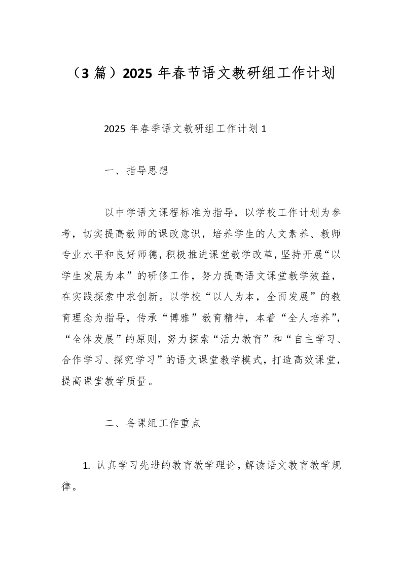(3篇)2025年春节语文教研组工作计划 02-24 工作计划 11 ——预览已结束,还剩10页未读——开通会员后可免费下载高清完整文档 资源下载此资源下载价格为15米,VIP免费,请先登录 资源下载下载价格15 米VIP免费请先登录 0 0