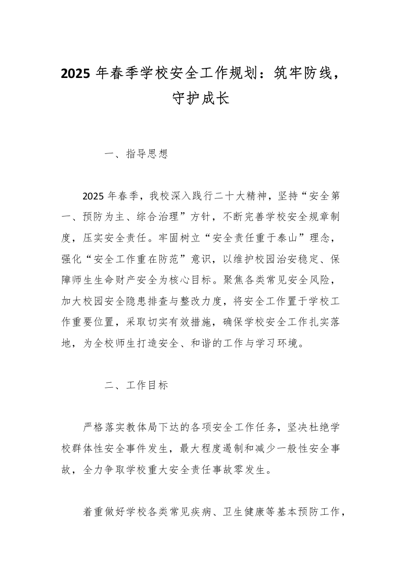 2025年春季学校安全工作规划:筑牢防线,守护成长 02-24 工作计划 11 ——预览已结束,还剩9页未读——开通会员后可免费下载高清完整文档 资源下载此资源下载价格为15米,VIP免费,请先登录 资源下载下载价格15 米VIP免费请先登录 0 0