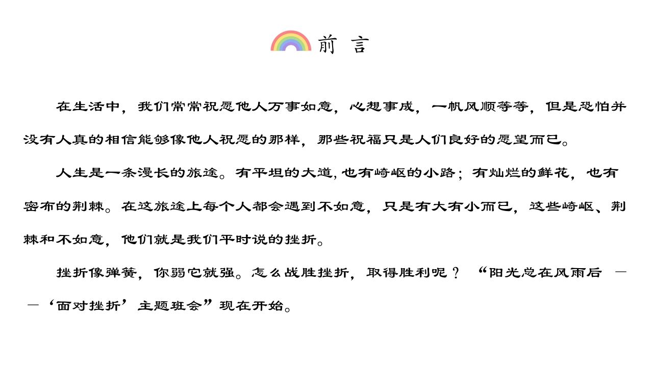 阳光总在风雨后,永不言败主题班会 02-26 励志教育 11 ——预览已结束,还剩27页未读——开通会员后可免费下载高清完整文档 资源下载此资源下载价格为15米,VIP免费,请先登录 资源下载下载价格15 米VIP免费请先登录 0 0