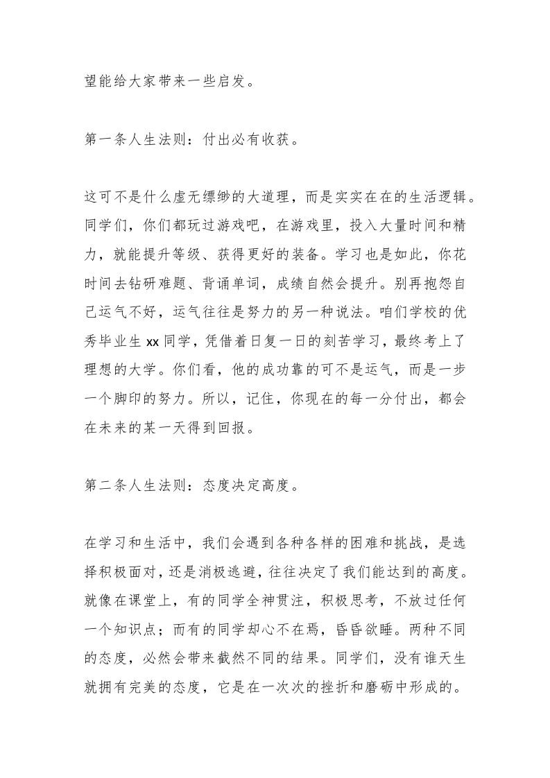 初中校长在开学典礼上讲话:解锁3条人生法则与6个成长密码,新学期开启学霸之路 02-27 发言稿 11 ——预览已结束,还剩5页未读——开通会员后可免费下载高清完整文档 资源下载此资源下载价格为15米,VIP免费,请先登录 资源下载下载价格15 米VIP免费请先登录 0 0