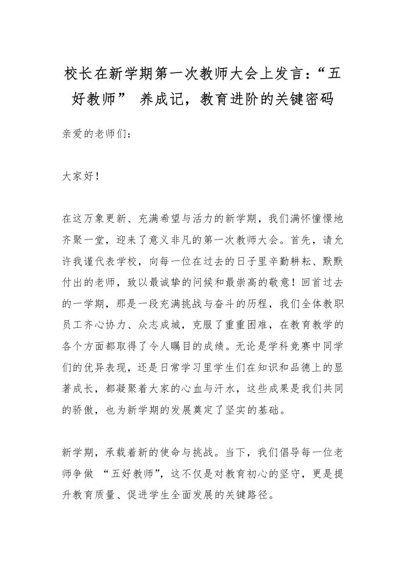 校长在新学期第一次教师大会上发言:“五好教师”养成记,教育进阶的关键密码 02-27 发言稿 12 ——预览已结束,还剩4页未读——开通会员后可免费下载高清完整文档 资源下载此资源下载价格为15米,VIP免费,请先登录 资源下载下载价格15 米VIP免费请先登录 0 0