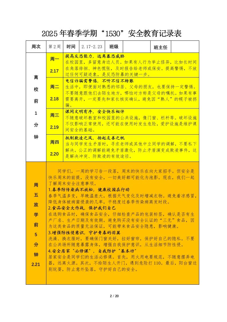 2025年春季1530学生安全教育记录 03-02 表格(通用) 13 ——预览已结束,还剩18页未读——开通会员后可免费下载高清完整文档 资源下载此资源下载价格为15米,VIP免费,请先登录 资源下载下载价格15 米VIP免费请先登录 0 0