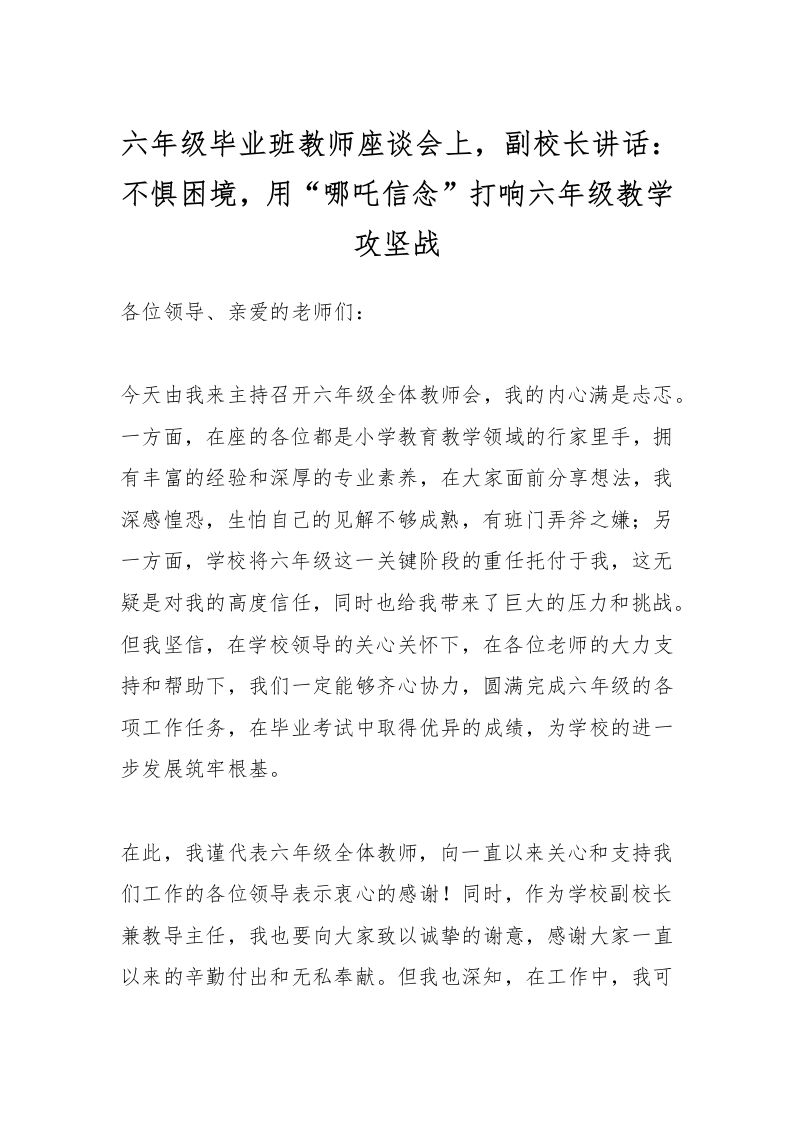 六年级毕业班教师座谈会上,副校长讲话:不惧困境,用“哪吒信念”打响六年级教学攻坚战 03-04 发言稿 11 ——预览已结束,还剩7页未读——开通会员后可免费下载高清完整文档 资源下载此资源下载价格为15米,VIP免费,请先登录 资源下载下载价格15 米VIP免费请先登录 0 0