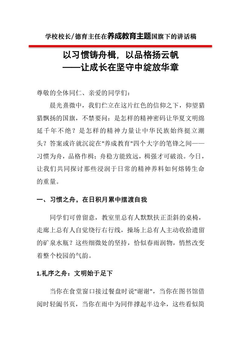 国旗下讲话第三周校长讲话稿:以习惯铸舟楫以品格扬云帆——让成长在坚守中绽放华章 03-04 发言稿 11 ——预览已结束,还剩3页未读——开通会员后可免费下载高清完整文档 资源下载此资源下载价格为15米,VIP免费,请先登录 资源下载下载价格15 米VIP免费请先登录 0 0