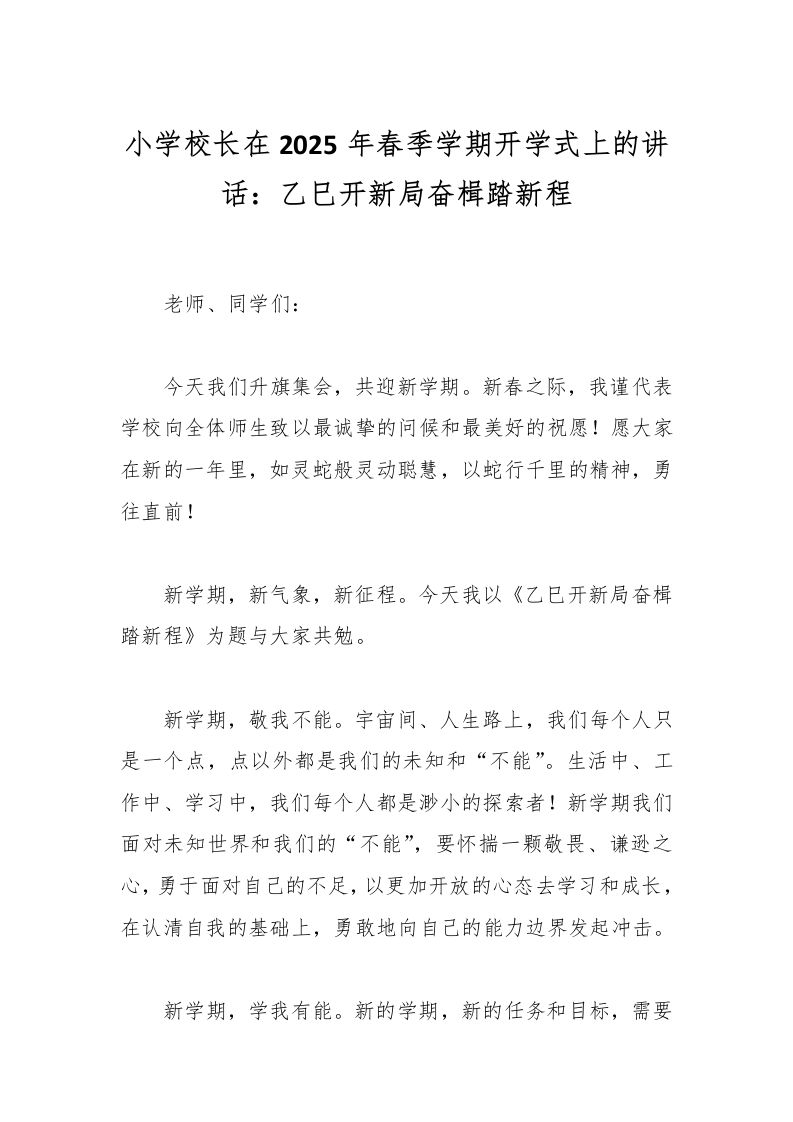 小学校长在2025年春季学期开学式上的讲话:乙巳开新局奋楫踏新程 03-04 发言稿 11 ——预览已结束,还剩1页未读——开通会员后可免费下载高清完整文档 资源下载此资源下载价格为15米,VIP免费,请先登录 资源下载下载价格15 米VIP免费请先登录 0 0