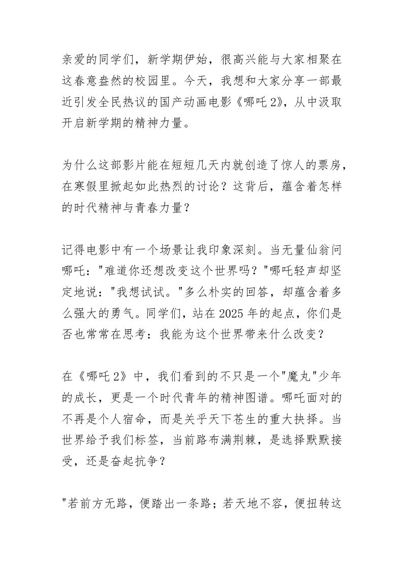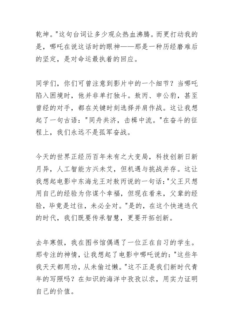思政第一课,校长讲话:令人惊叹的《哪吒2》! 03-04 发言稿 11 ——预览已结束,还剩2页未读——开通会员后可免费下载高清完整文档 资源下载此资源下载价格为15米,VIP免费,请先登录 资源下载下载价格15 米VIP免费请先登录 0 0