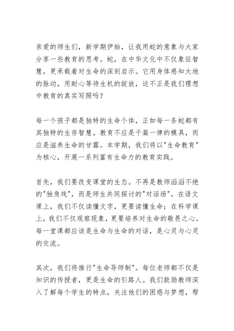蛇年春季开学典礼,校长精彩讲话:蛇代表智慧!但99%的人都没懂这层深意 03-04 发言稿 11 ——预览已结束,还剩7页未读——开通会员后可免费下载高清完整文档 资源下载此资源下载价格为15米,VIP免费,请先登录 资源下载下载价格15 米VIP免费请先登录 0 0