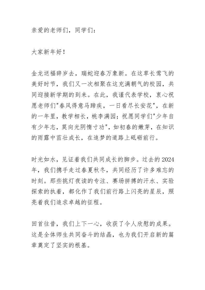 中学校长春季期开学典礼讲话:用3个“中国力量”!为学生打开2025年的新起点! 03-05 发言稿 11 ——预览已结束,还剩3页未读——开通会员后可免费下载高清完整文档 资源下载此资源下载价格为15米,VIP免费,请先登录 资源下载下载价格15 米VIP免费请先登录 0 0