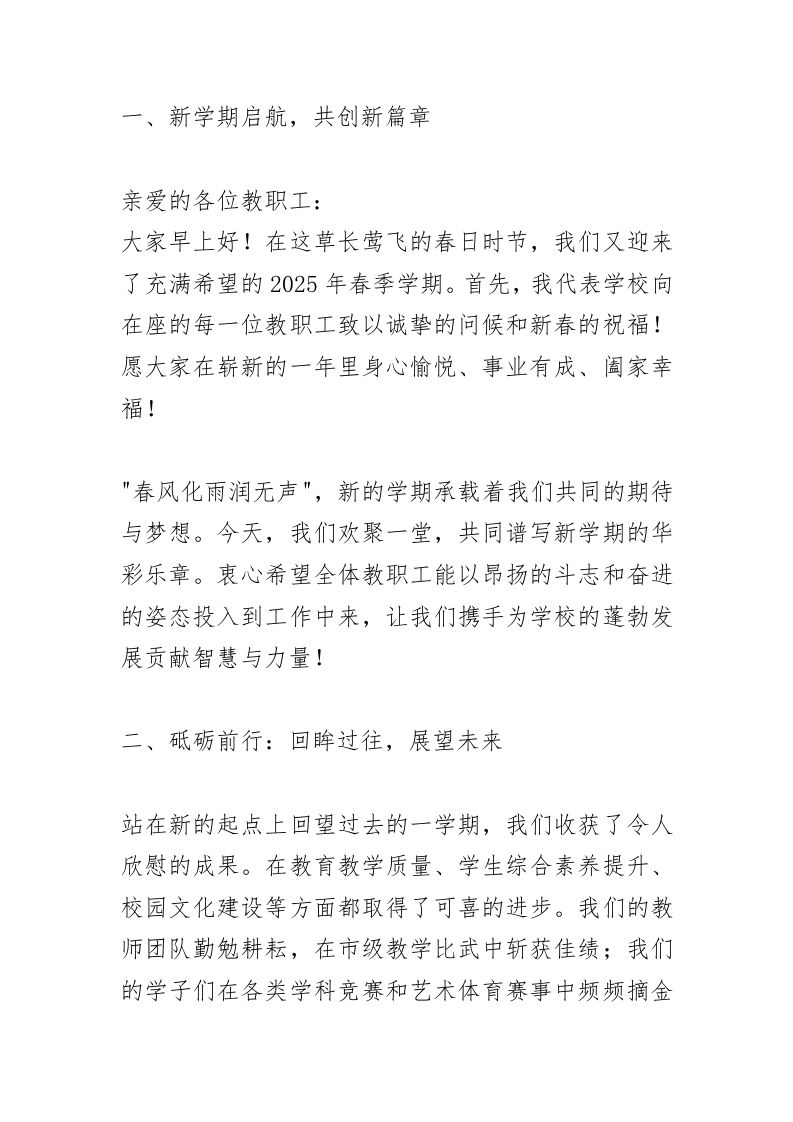 新学期开学全体教职工大会,校长讲话:点燃2025!推动学校高质量发展的九大领域“9大关键”! 03-05 发言稿 11 ——预览已结束,还剩9页未读——开通会员后可免费下载高清完整文档 资源下载此资源下载价格为15米,VIP免费,请先登录 资源下载下载价格15 米VIP免费请先登录 0 0