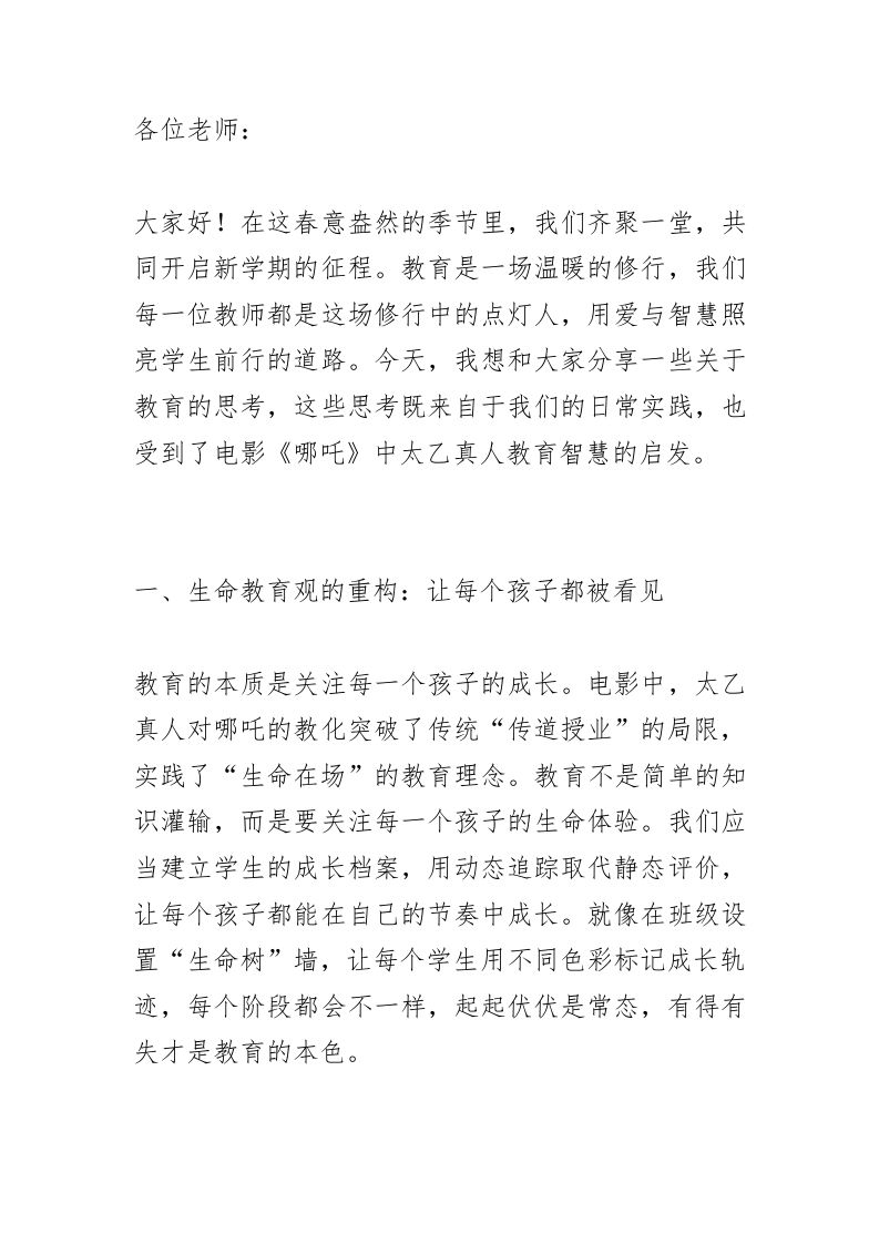 校长在2025春季新学期全体教师会议上讲话:学“太乙真人”当一名好教师! 03-05 发言稿 11 ——预览已结束,还剩6页未读——开通会员后可免费下载高清完整文档 资源下载此资源下载价格为15米,VIP免费,请先登录 资源下载下载价格15 米VIP免费请先登录 0 0