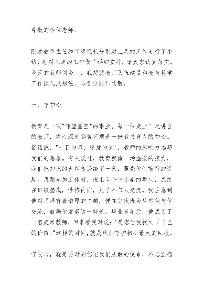 校长在教师例会上讲话:三尺讲台上的“五大支柱”!“守初心”“增动力”“练内功”“重实效”“铸师魂”! 03-05 发言稿 13 ——预览已结束,还剩6页未读——开通会员后可免费下载高清完整文档 资源下载此资源下载价格为15米,VIP免费,请先登录 资源下载下载价格15 米VIP免费请先登录 0 0