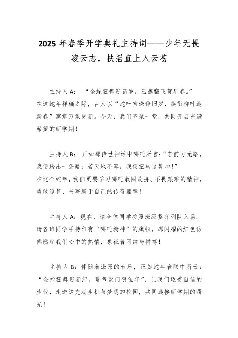 2025年春季开学典礼主持词——少年无畏凌云志,扶摇直上入云苍 03-06 发言稿 11 ——预览已结束,还剩4页未读——开通会员后可免费下载高清完整文档 资源下载此资源下载价格为15米,VIP免费,请先登录 资源下载下载价格15 米VIP免费请先登录 0 0