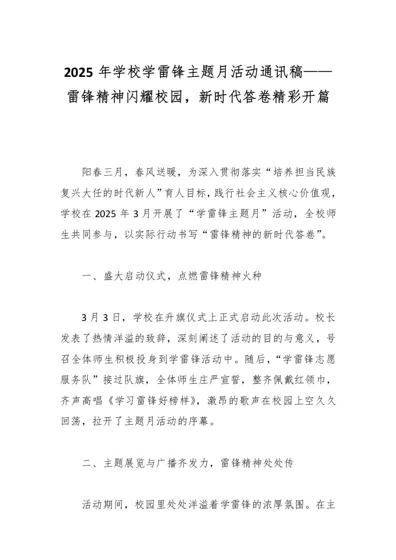 2025年学校学雷锋主题月活动通讯稿——雷锋精神闪耀校园,新时代答卷精彩开篇 03-06 发言稿 11 ——预览已结束,还剩1页未读——开通会员后可免费下载高清完整文档 资源下载此资源下载价格为15米,VIP免费,请先登录 资源下载下载价格15 米VIP免费请先登录 0 0