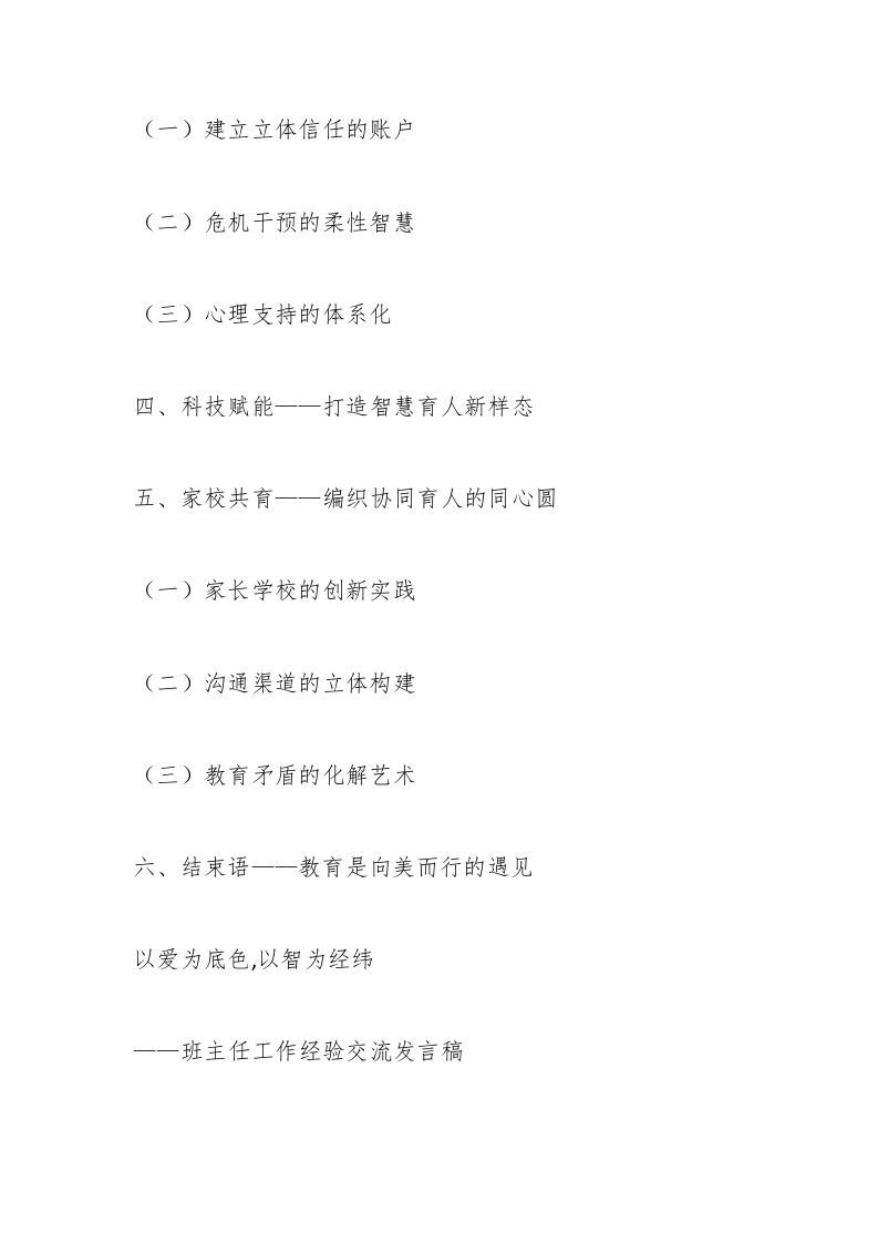 以爱为底色,以智为经纬——班主任工作经验交流发言稿 03-07 发言稿 11 ——预览已结束,还剩10页未读——开通会员后可免费下载高清完整文档 资源下载此资源下载价格为15米,VIP免费,请先登录 资源下载下载价格15 米VIP免费请先登录 0 0