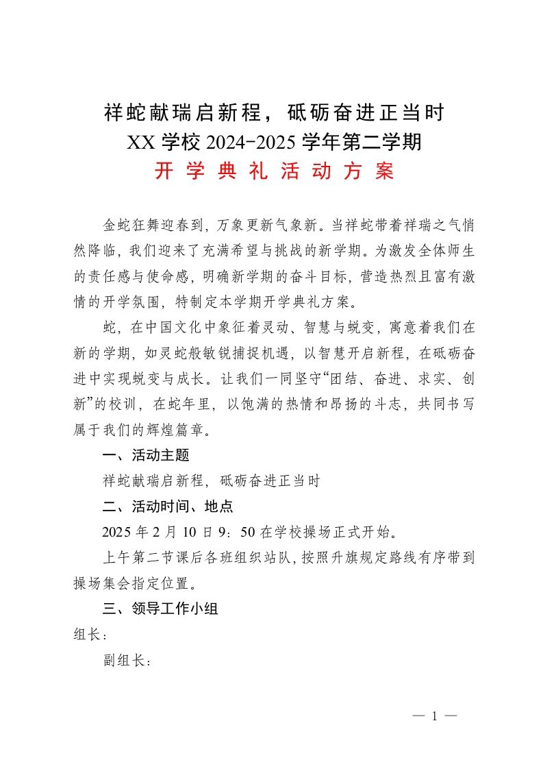 祥蛇献瑞启新程,砥砺奋进正当时2024-2025学年第二学期开学典礼活动方案 03-09 发言稿 13 ——预览已结束,还剩5页未读——开通会员后可免费下载高清完整文档 资源下载此资源下载价格为15米,VIP免费,请先登录 资源下载下载价格15 米VIP免费请先登录 0 0