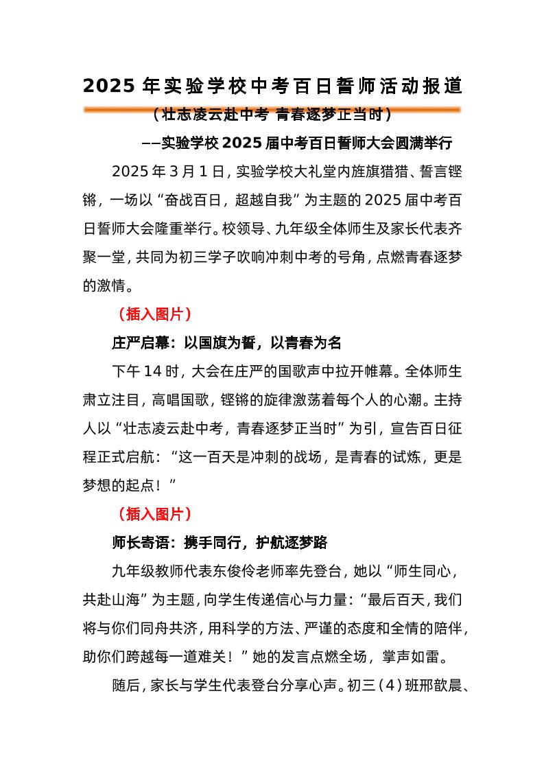 2025年中考百日誓师活动报道 03-24 发言稿 810 ——预览已结束,还剩1页未读——开通会员后可免费下载高清完整文档 资源下载此资源下载价格为15米,VIP免费,请先登录 资源下载下载价格15 米VIP免费请先登录 0 0