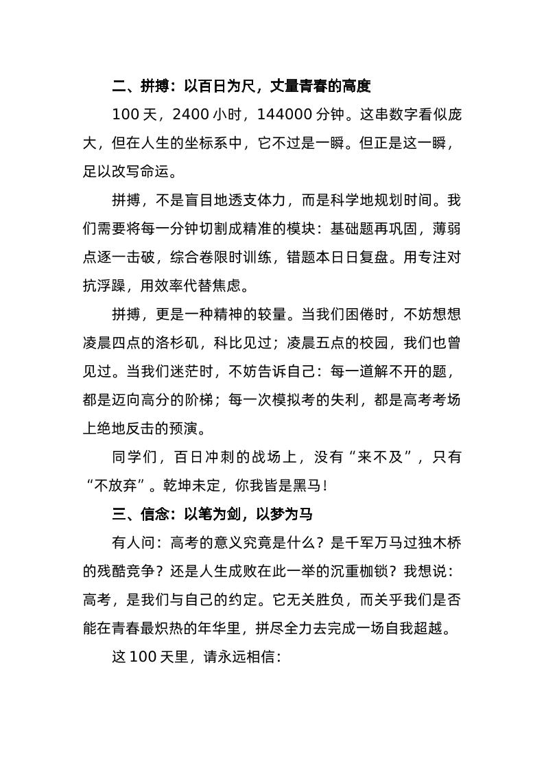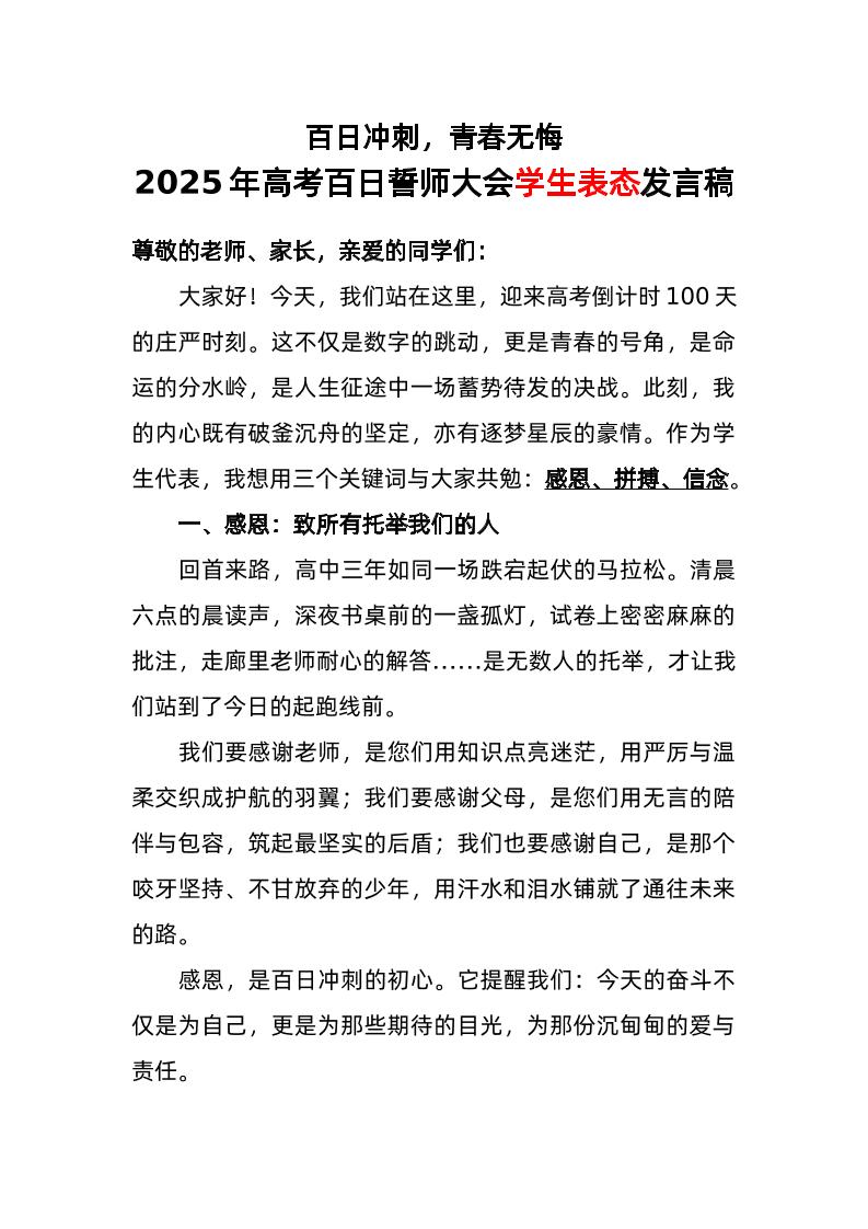2025年高考百日誓师大会学生表态发言稿 03-24 发言稿 720 ——预览已结束,还剩1页未读——开通会员后可免费下载高清完整文档 资源下载此资源下载价格为15米,VIP免费,请先登录 资源下载下载价格15 米VIP免费请先登录 0 0