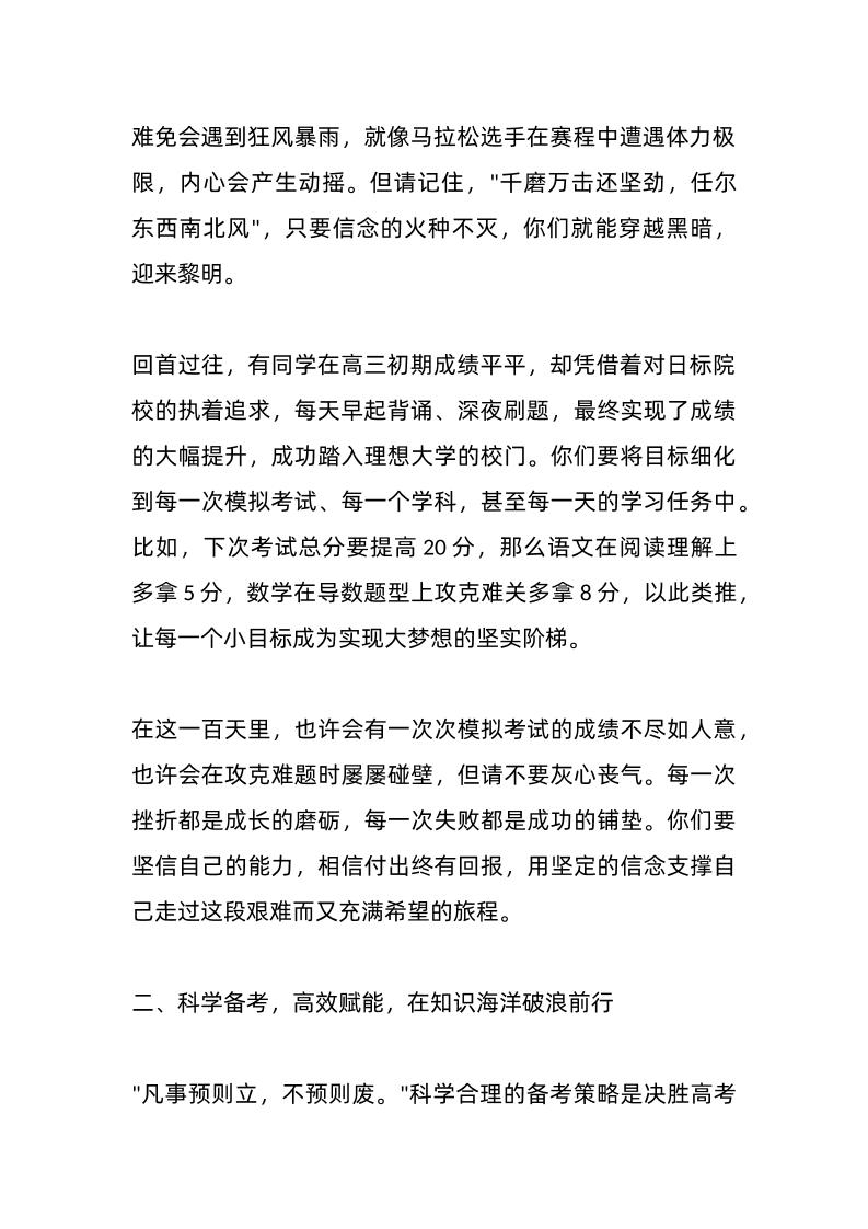 百日誓师大会校长致辞:以百日之姿,奔赴梦想高光时刻 03-26 发言稿 1.48k ——预览已结束,还剩4页未读——开通会员后可免费下载高清完整文档 资源下载此资源下载价格为15米,VIP免费,请先登录 资源下载下载价格15 米VIP免费请先登录 0 0
