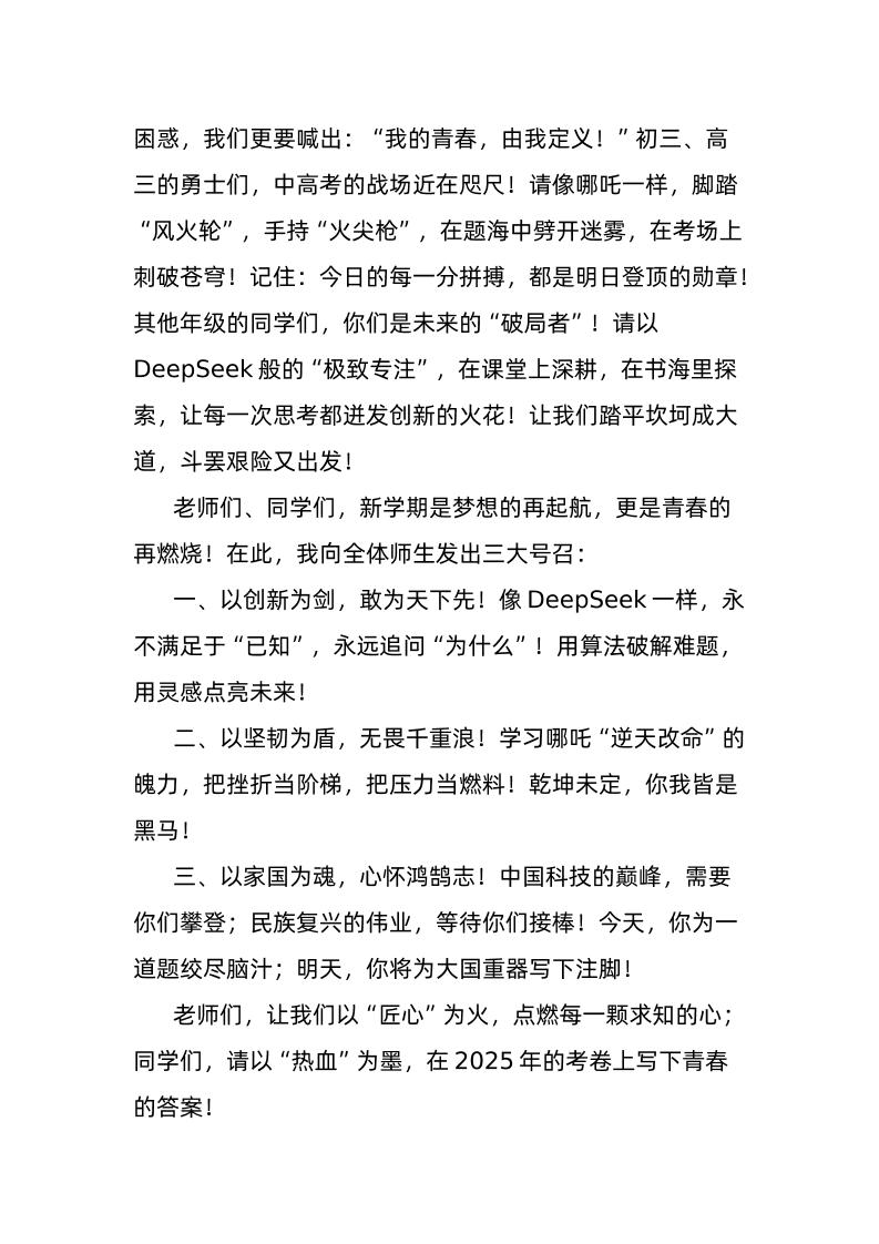 校党委书记在2025年春季开学典礼上发言 03-27 发言稿 1.23k ——预览已结束,还剩1页未读——开通会员后可免费下载高清完整文档 资源下载此资源下载价格为15米,VIP免费,请先登录 资源下载下载价格15 米VIP免费请先登录 0 0