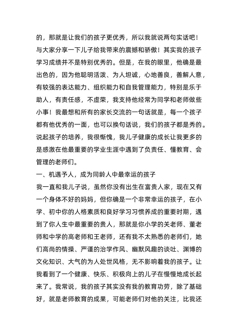 (2篇)初二家长会家长发言稿