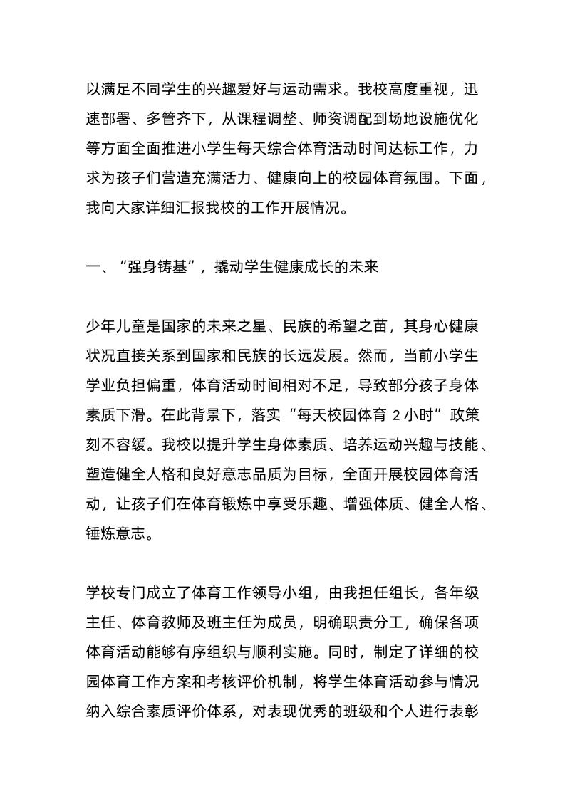 小学校长关于2025落实每天综合体育2小时开展情况汇报:从“体”破局,每天两小时,锻造学生健康“硬实力” 03-28 发言稿 524 ——预览已结束,还剩9页未读——开通会员后可免费下载高清完整文档 资源下载此资源下载价格为15米,VIP免费,请先登录 资源下载下载价格15 米VIP免费请先登录 0 0