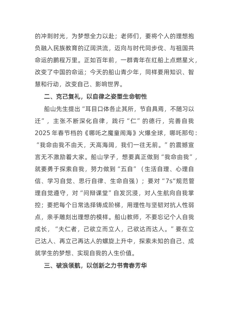 中学2025年春季开学典礼上的讲话:守正创新勇攀高峰 03-30 发言稿 888 ——预览已结束,还剩1页未读——开通会员后可免费下载高清完整文档 资源下载此资源下载价格为15米,VIP免费,请先登录 资源下载下载价格15 米VIP免费请先登录 0 0
