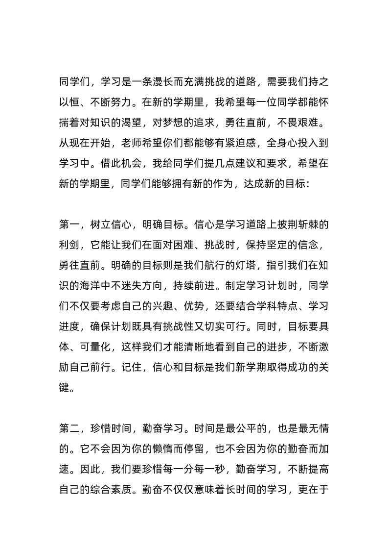 中小学生新学期校长(教师代表)开学典礼演讲发言稿:迎接新学期奋进新征程 03-31 发言稿 771 ——预览已结束,还剩2页未读——开通会员后可免费下载高清完整文档 资源下载此资源下载价格为15米,VIP免费,请先登录 资源下载下载价格15 米VIP免费请先登录 0 0