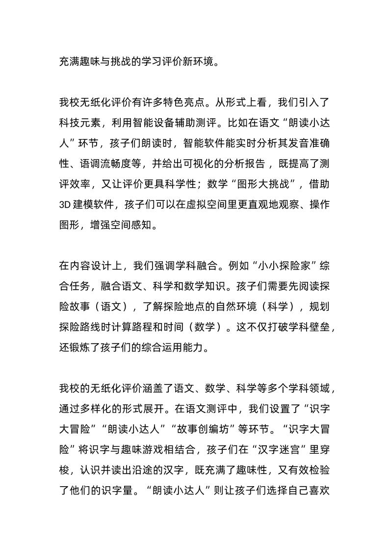 在全市小学教育研讨会上,校长经验交流发言:一二年级无纸化评价方面的探索与实践 03-31 发言稿 999 ——预览已结束,还剩3页未读——开通会员后可免费下载高清完整文档 资源下载此资源下载价格为15米,VIP免费,请先登录 资源下载下载价格15 米VIP免费请先登录 0 0