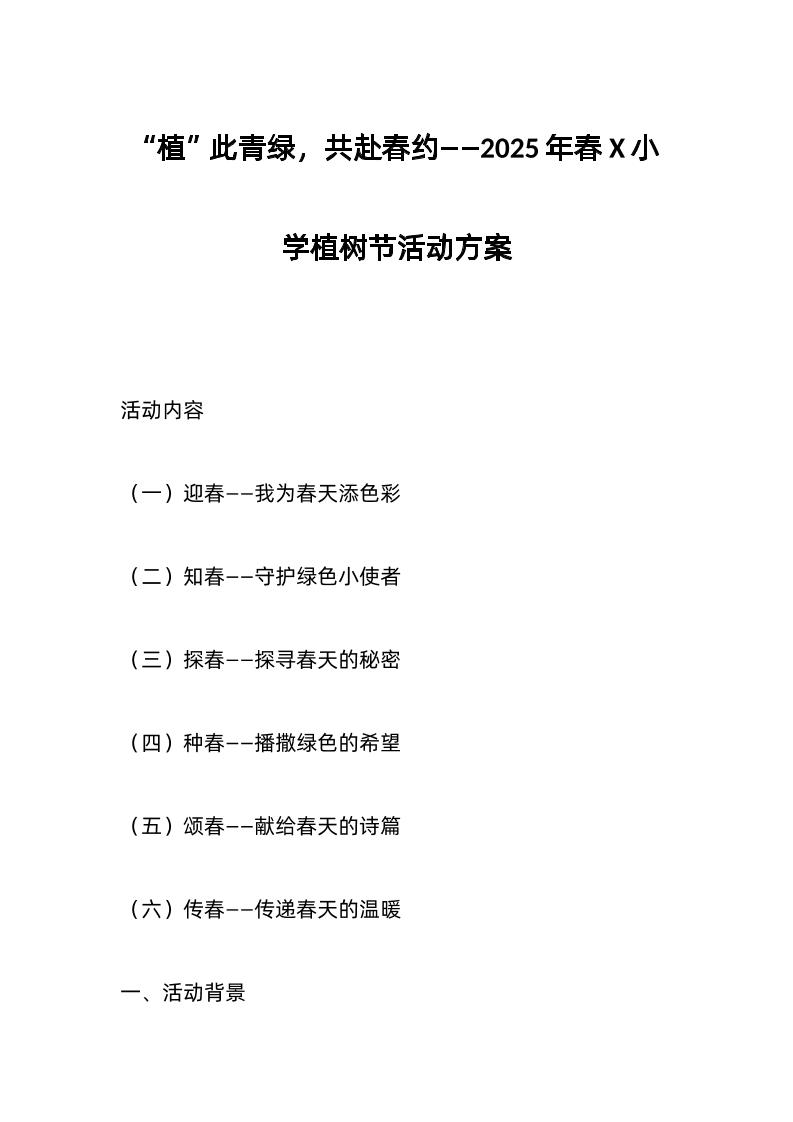 “植”此青绿,共赴春约——2025年春X小学植树节活动方案 04-06 管理相关 1.02k ——预览已结束,还剩4页未读——开通会员后可免费下载高清完整文档 资源下载此资源下载价格为15米,VIP免费,请先登录 资源下载下载价格15 米VIP免费请先登录 0 0