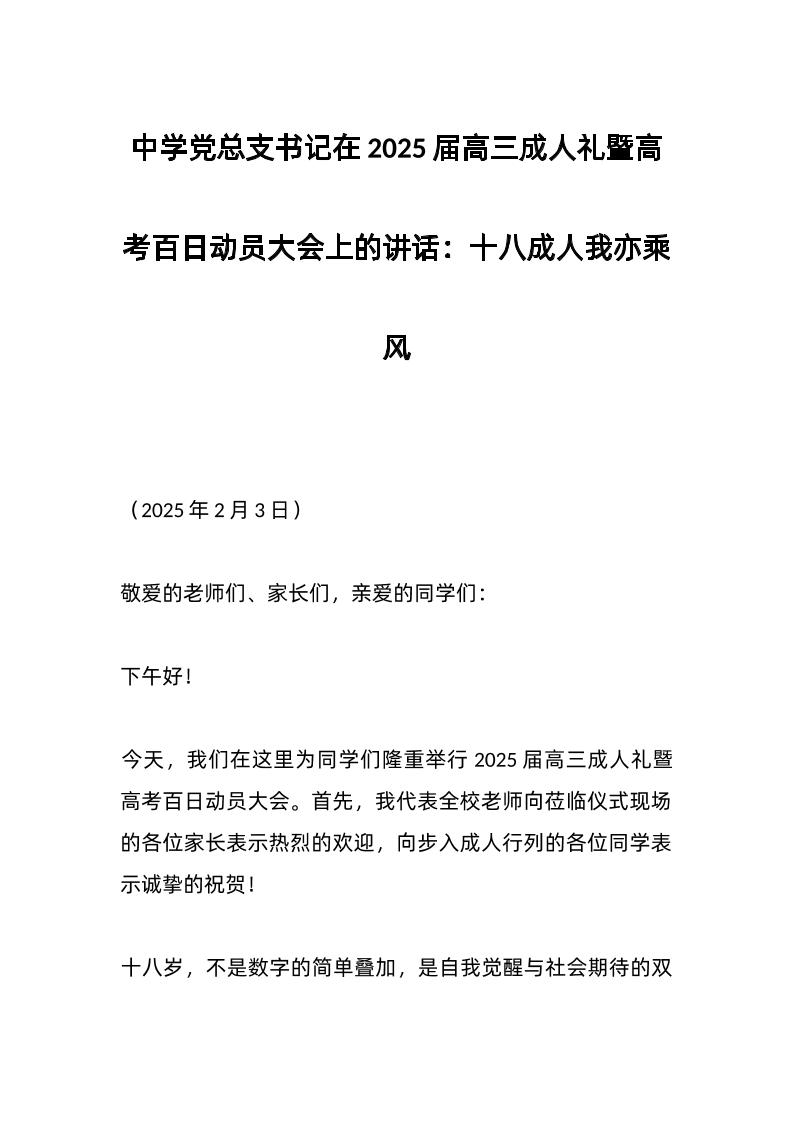 中学d总支书记在2025届高三成人礼暨高考百日动员大会上的讲话:十八成人我亦乘风 04-09 发言稿 750 ——预览已结束,还剩2页未读——开通会员后可免费下载高清完整文档 资源下载此资源下载价格为15米,VIP免费,请先登录 资源下载下载价格15 米VIP免费请先登录 0 0