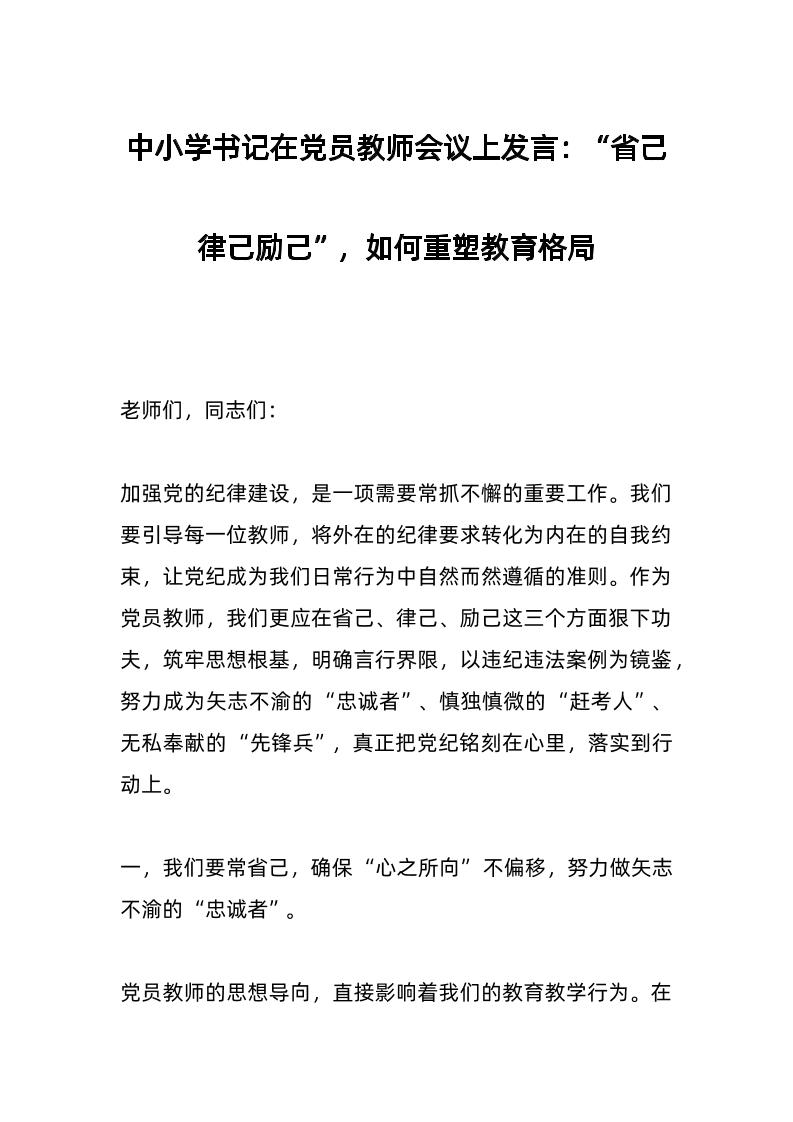 中小学书记在d员教师会议上发言:“省己律己励己”,如何重塑教育格局 04-09 发言稿 663 ——预览已结束,还剩2页未读——开通会员后可免费下载高清完整文档 资源下载此资源下载价格为15米,VIP免费,请先登录 资源下载下载价格15 米VIP免费请先登录 0 0