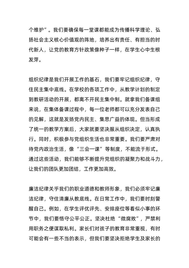 中小学书记在全体教师大会上发言:严守“六纪六守”,纪律,立德树人 04-09 发言稿 599 ——预览已结束,还剩3页未读——开通会员后可免费下载高清完整文档 资源下载此资源下载价格为15米,VIP免费,请先登录 资源下载下载价格15 米VIP免费请先登录 0 0