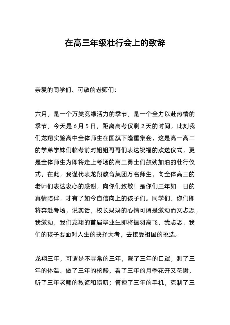 在高三年级壮行会上的致辞 04-09 发言稿 1.23k ——预览已结束,还剩1页未读——开通会员后可免费下载高清完整文档 资源下载此资源下载价格为15米,VIP免费,请先登录 资源下载下载价格15 米VIP免费请先登录 0 0