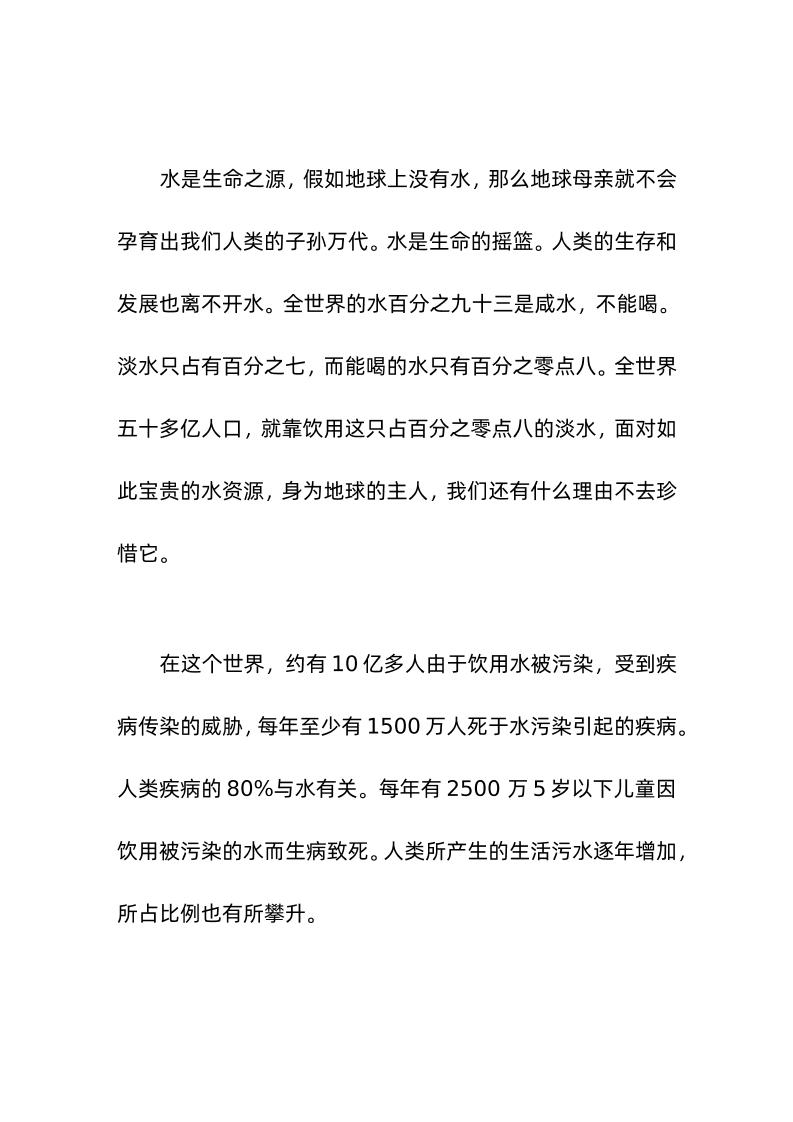 3-22世界水日,校长在国旗下演讲保护水环境,需要你我他
