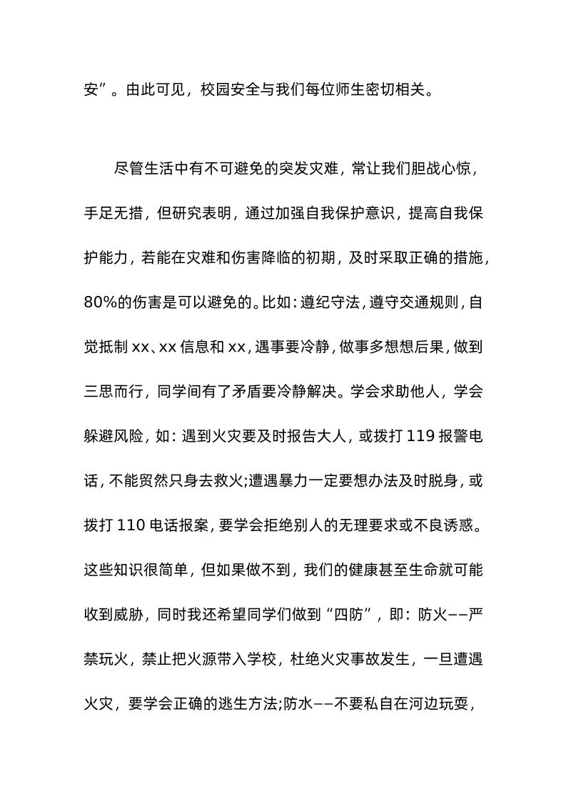 校长在安全教育日国旗下讲话珍爱生命,学会保护自己 04-11 国旗下讲话 706 ——预览已结束,还剩1页未读——开通会员后可免费下载高清完整文档 资源下载此资源下载价格为15米,VIP免费,请先登录 资源下载下载价格15 米VIP免费请先登录 0 0