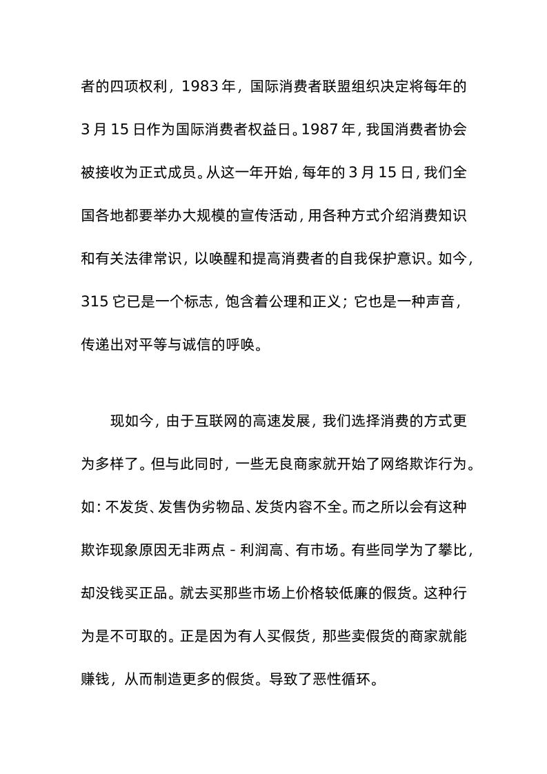 315国际消费者权益日,校长讲话携手共治,畅享消费 04-12 发言稿 959 ——预览已结束,还剩1页未读——开通会员后可免费下载高清完整文档 资源下载此资源下载价格为15米,VIP免费,请先登录 资源下载下载价格15 米VIP免费请先登录 0 0