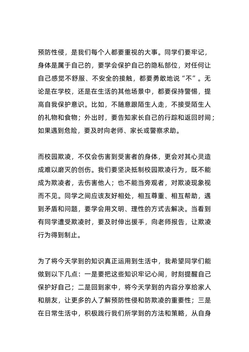 《小学生预防性侵,防欺凌法治教育》讲座结束后,校长总结发言:增强自我保护意识,提高防范能力 04-12 发言稿 1.48k ——预览已结束,还剩1页未读——开通会员后可免费下载高清完整文档 资源下载此资源下载价格为15米,VIP免费,请先登录 资源下载下载价格15 米VIP免费请先登录 0 0