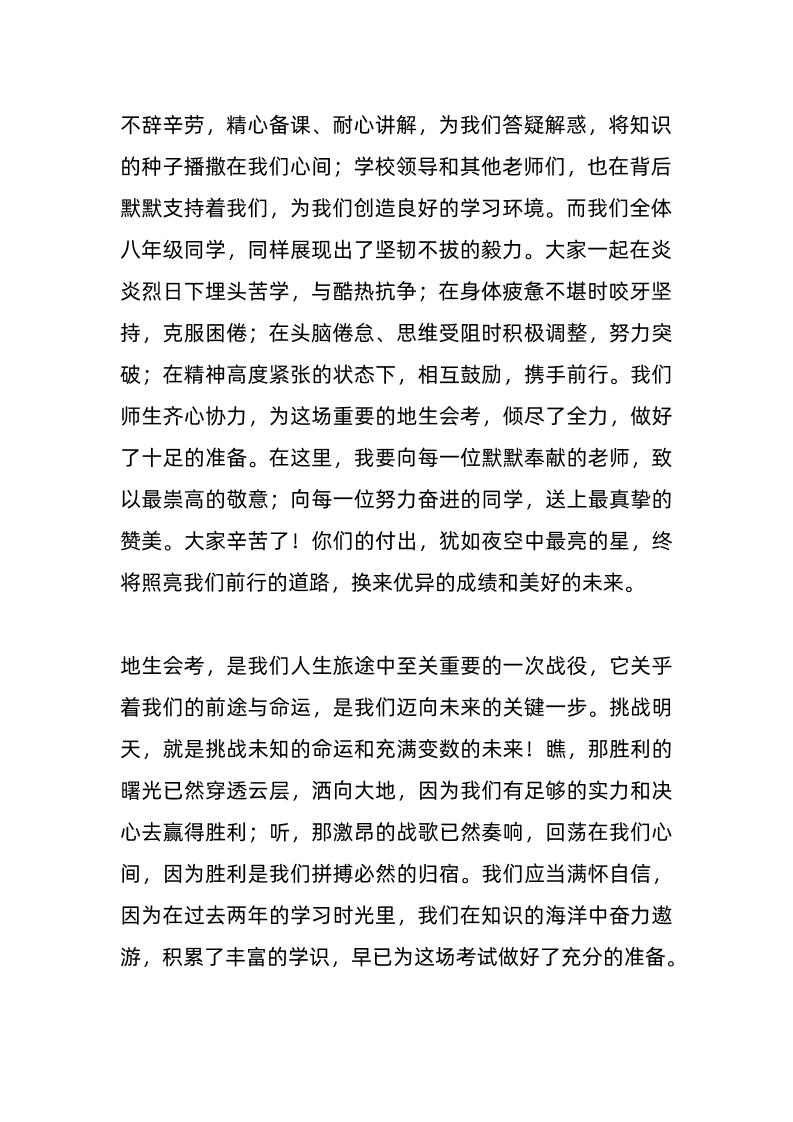 八年级生地会考动员会,校长讲话:倒计时归零,地生会考,八年级要“鲨”疯了! 04-13 发言稿 592 ——预览已结束,还剩3页未读——开通会员后可免费下载高清完整文档 资源下载此资源下载价格为15米,VIP免费,请先登录 资源下载下载价格15 米VIP免费请先登录 0 0