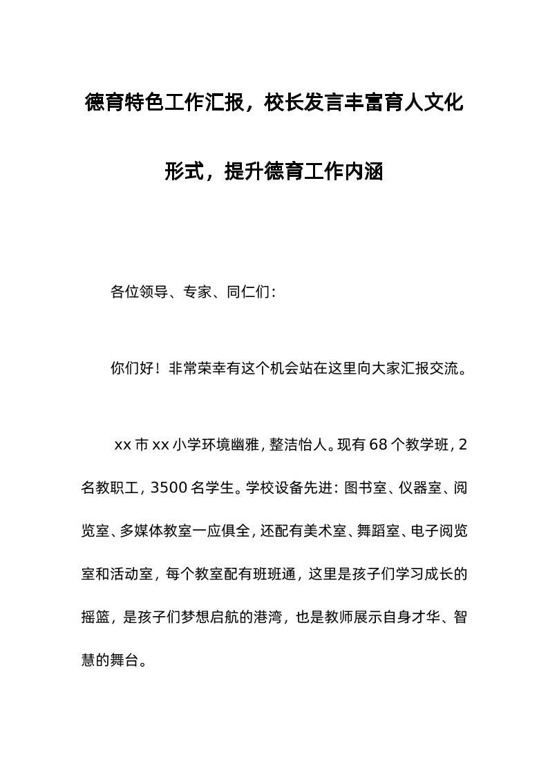 德育特色工作汇报,校长发言丰富育人文化形式,提升德育工作内涵 04-14 发言稿 673 ——预览已结束,还剩11页未读——开通会员后可免费下载高清完整文档 资源下载此资源下载价格为15米,VIP免费,请先登录 资源下载下载价格15 米VIP免费请先登录 0 0