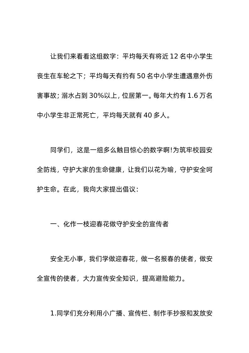 第xx个全国中小学生安全教育日,校长在国旗下讲话守护安全,生命如花 04-14 国旗下讲话 1.47k ——预览已结束,还剩3页未读——开通会员后可免费下载高清完整文档 资源下载此资源下载价格为15米,VIP免费,请先登录 资源下载下载价格15 米VIP免费请先登录 0 0