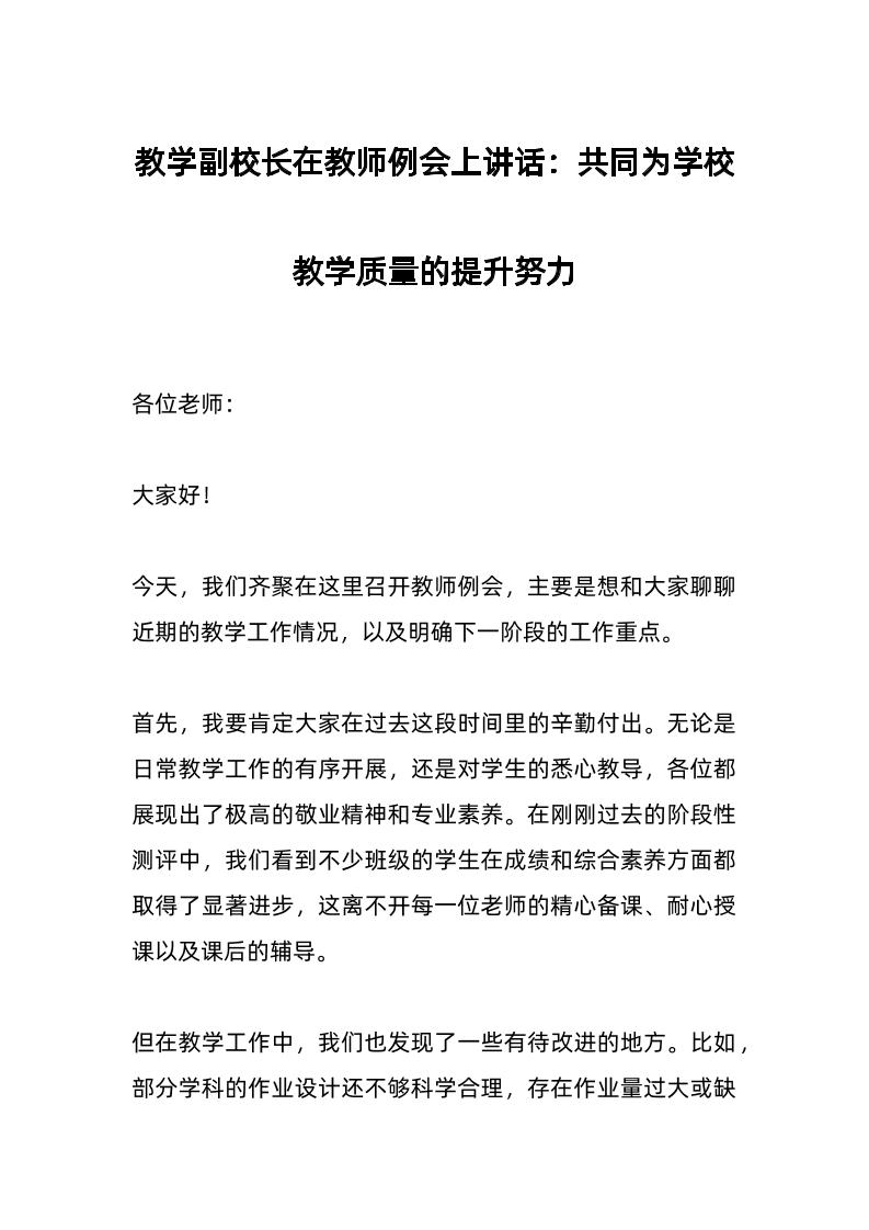 教学副校长在教师例会上讲话:共同为学校教学质量的提升努力 04-15 发言稿 1.43k ——预览已结束,还剩2页未读——开通会员后可免费下载高清完整文档 资源下载此资源下载价格为15米,VIP免费,请先登录 资源下载下载价格15 米VIP免费请先登录 0 0