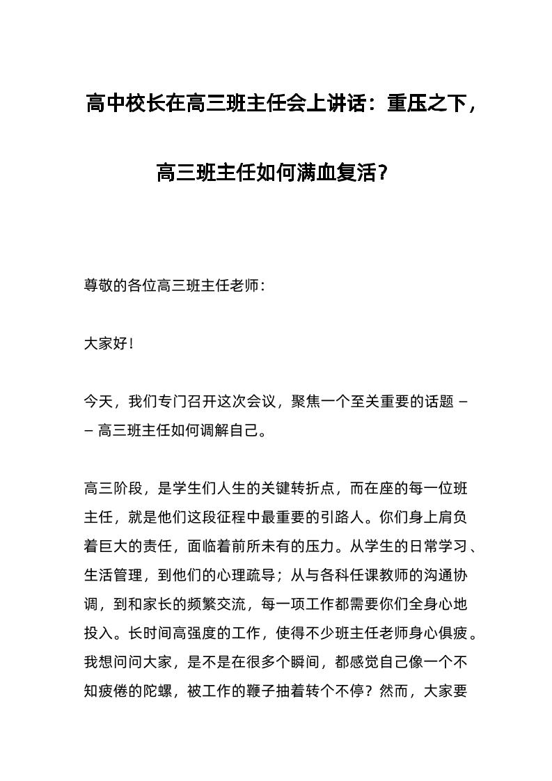 高中校长在高三班主任会上讲话:重压之下,高三班主任如何满血复活?