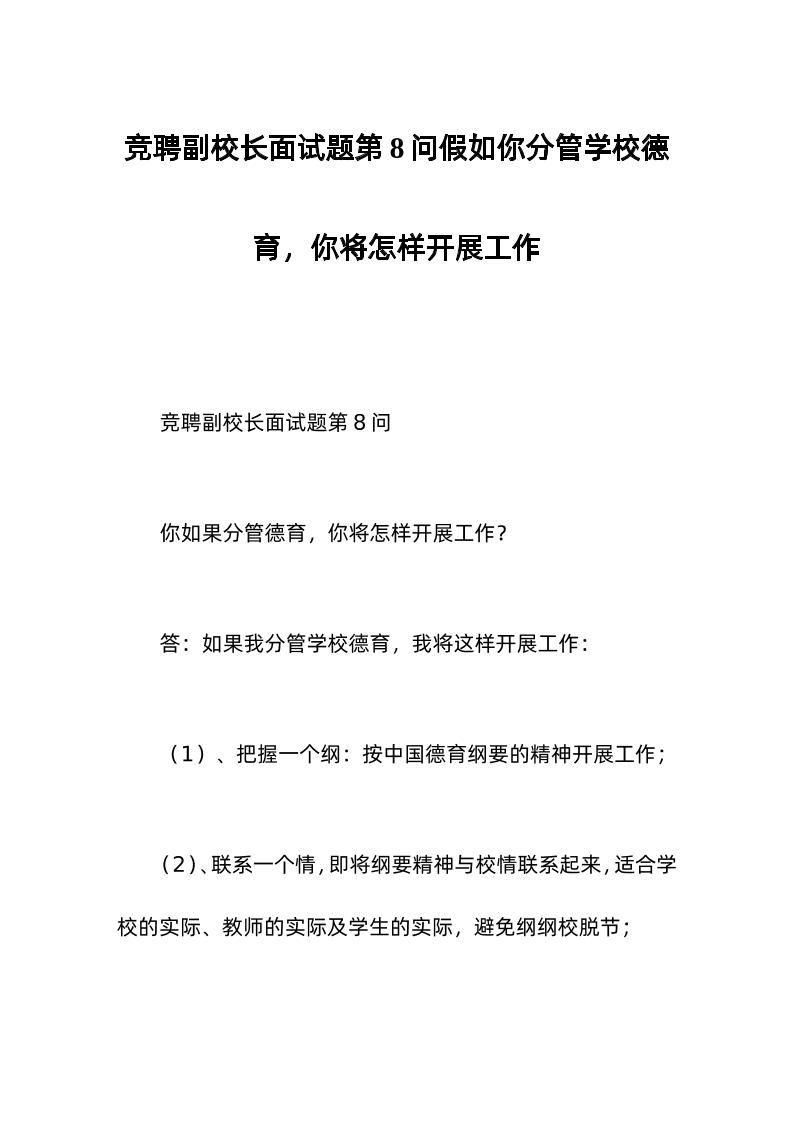 竞聘副校长面试题第8问假如你分管学校德育,你将怎样开展工作 04-16 发言稿 1.47k ——预览已结束,还剩1页未读——开通会员后可免费下载高清完整文档 资源下载此资源下载价格为15米,VIP免费,请先登录 资源下载下载价格15 米VIP免费请先登录 0 0