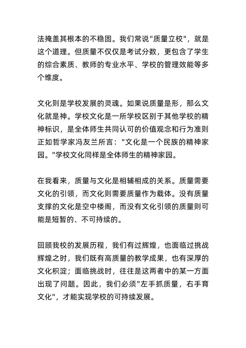 全校教师例会上,校长讲话:左手抓质量!右手育文化! 04-17 发言稿 682 ——预览已结束,还剩5页未读——开通会员后可免费下载高清完整文档 资源下载此资源下载价格为15米,VIP免费,请先登录 资源下载下载价格15 米VIP免费请先登录 0 0