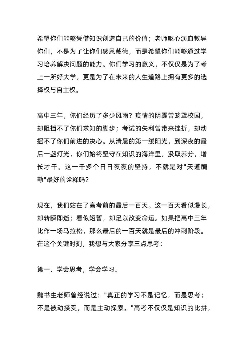 校长在百日誓师大会上讲话:“寒窗十二载,百日定乾坤”! 04-17 发言稿 938 ——预览已结束,还剩4页未读——开通会员后可免费下载高清完整文档 资源下载此资源下载价格为15米,VIP免费,请先登录 资源下载下载价格15 米VIP免费请先登录 0 0