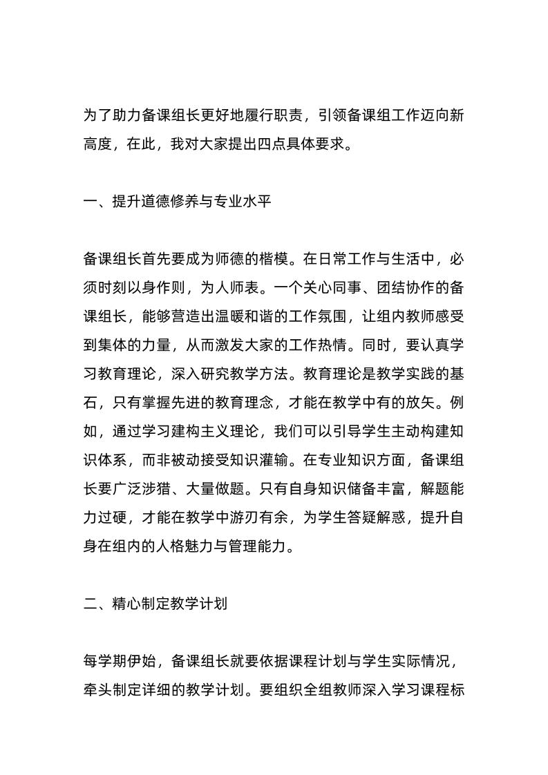 校长在备课组长会议上发言:备课组长,扛起教学提升的“大旗” 04-18 发言稿 1.42k ——预览已结束,还剩3页未读——开通会员后可免费下载高清完整文档 资源下载此资源下载价格为15米,VIP免费,请先登录 资源下载下载价格15 米VIP免费请先登录 0 0