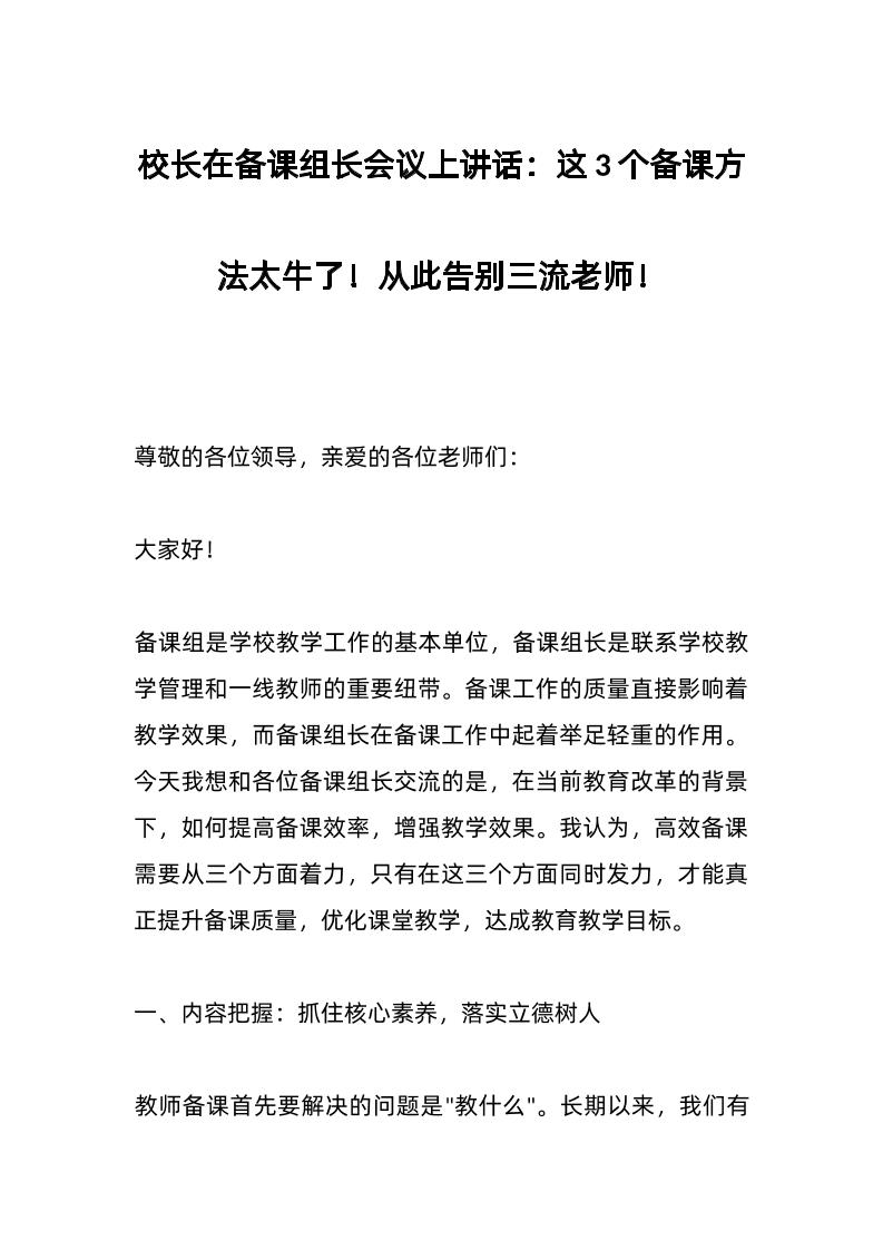 校长在备课组长会议上讲话:这3个备课方法太牛了!从此告别三流老师! 04-18 发言稿 613 ——预览已结束,还剩4页未读——开通会员后可免费下载高清完整文档 资源下载此资源下载价格为15米,VIP免费,请先登录 资源下载下载价格15 米VIP免费请先登录 0 0