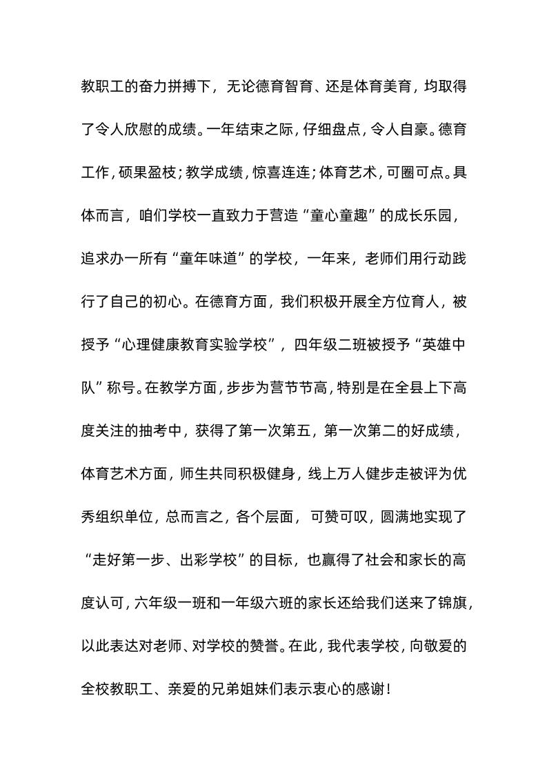 校长在教育教学年会上致辞德育工作,硕果盈枝;教学成绩,惊喜连连;体育艺术,可圈可点 04-18 发言稿 1.15k ——预览已结束,还剩2页未读——开通会员后可免费下载高清完整文档 资源下载此资源下载价格为15米,VIP免费,请先登录 资源下载下载价格15 米VIP免费请先登录 0 0