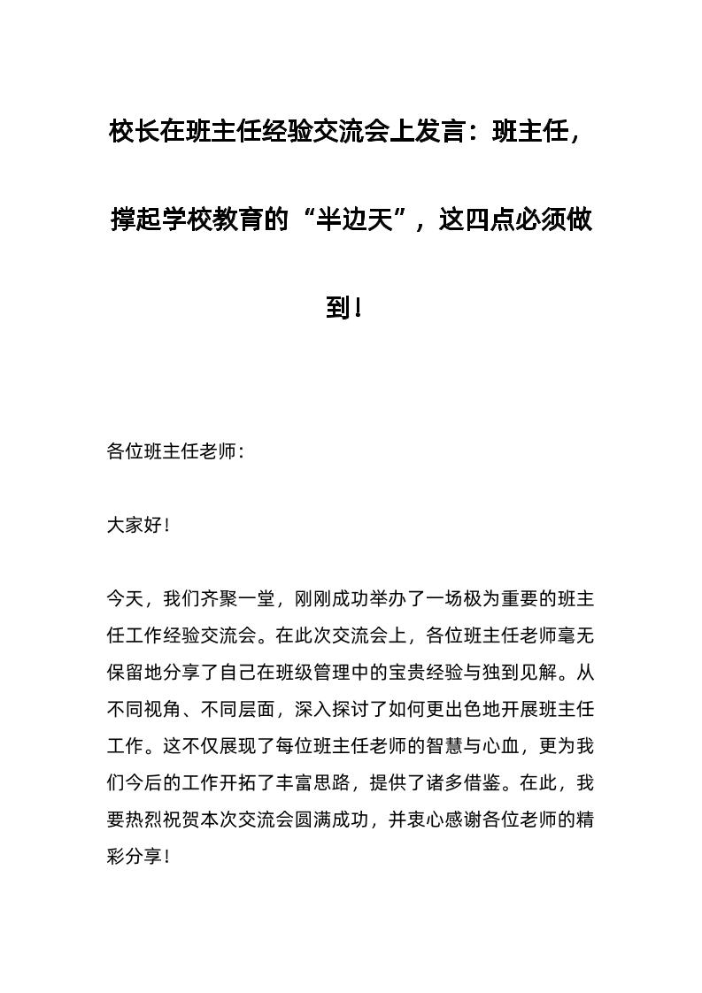 校长在班主任经验交流会上发言:班主任,撑起学校教育的“半边天”,这四点必须做到! 04-18 发言稿 659 ——预览已结束,还剩5页未读——开通会员后可免费下载高清完整文档 资源下载此资源下载价格为15米,VIP免费,请先登录 资源下载下载价格15 米VIP免费请先登录 0 0